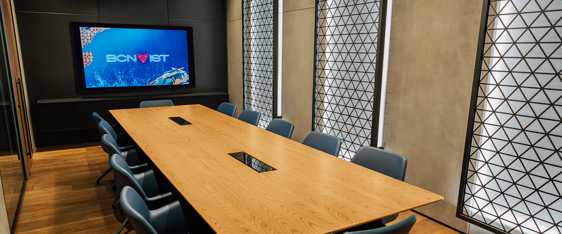 Toplantı ve Çalışma Masaları: Co-working alanlarında kullanılan uzun toplantı masaları, doğal ahşap kaplama tablalar ve entegre elektrik/data çözümleri ile fonksiyonel hale getirilmiştir.