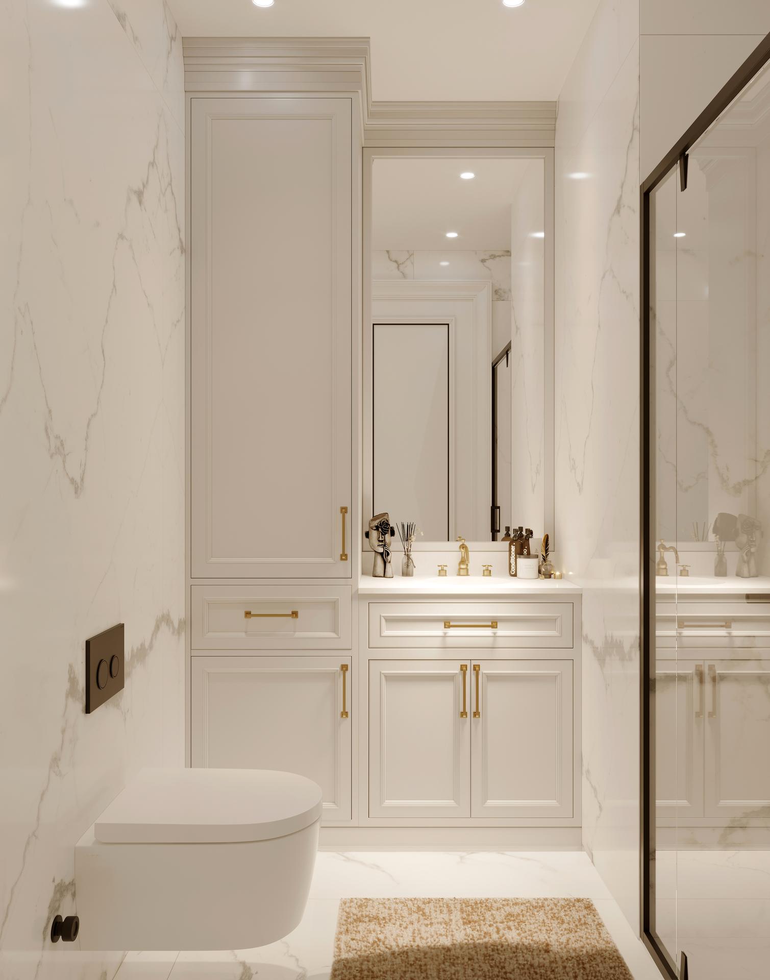 Banyolar: Neme dayanıklı malzemelerle üretilen, mermer lavabolarla tam uyumlu, depolama çözümleri sunan şık ve minimalist banyo dolapları.