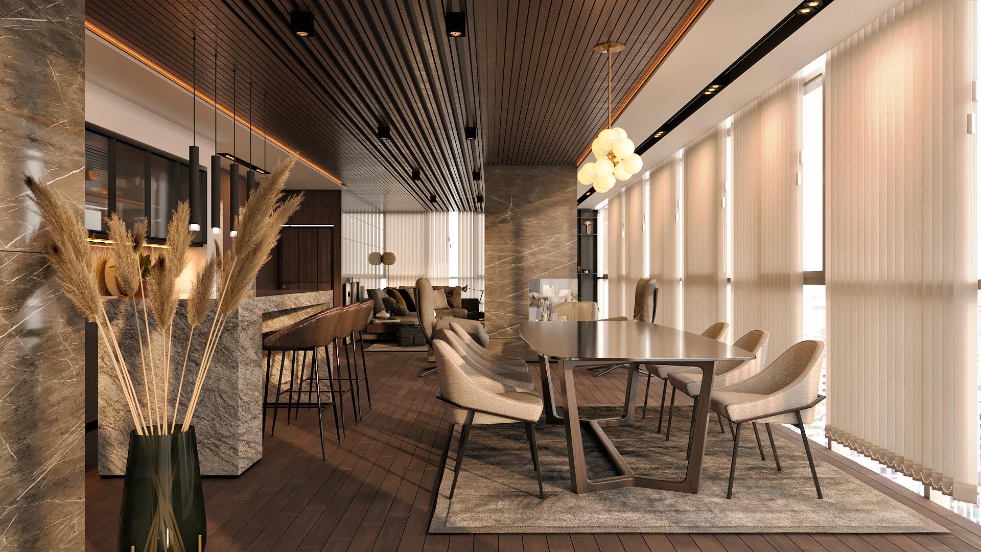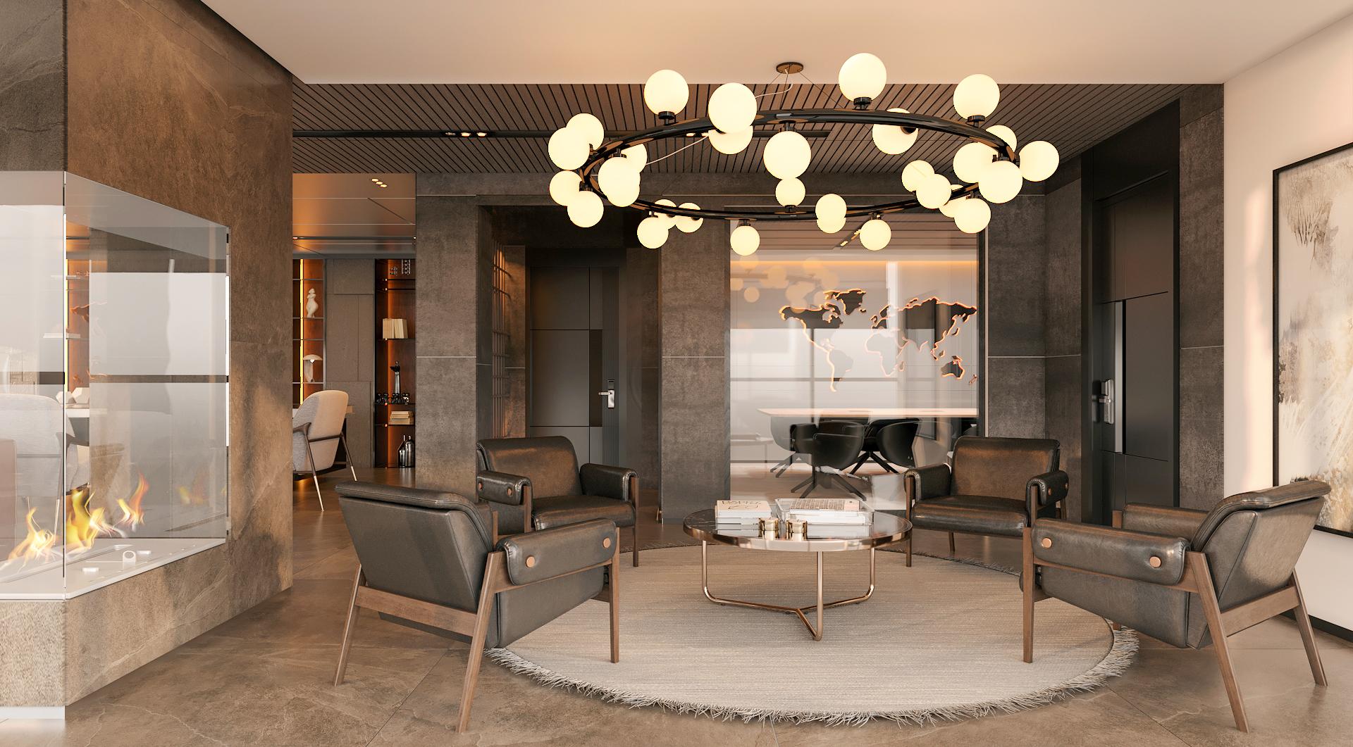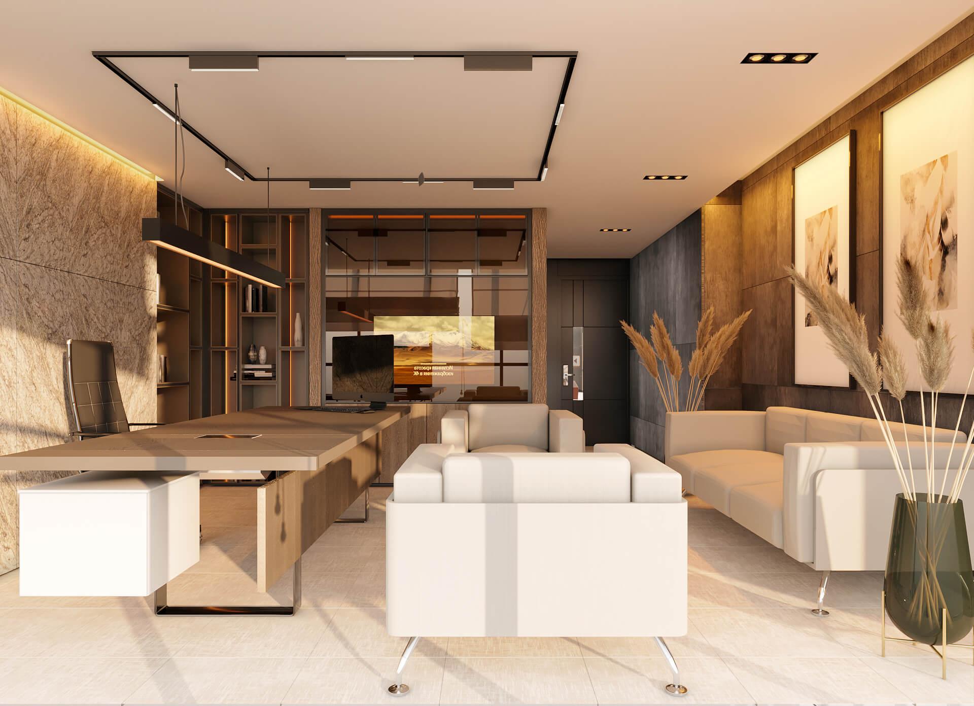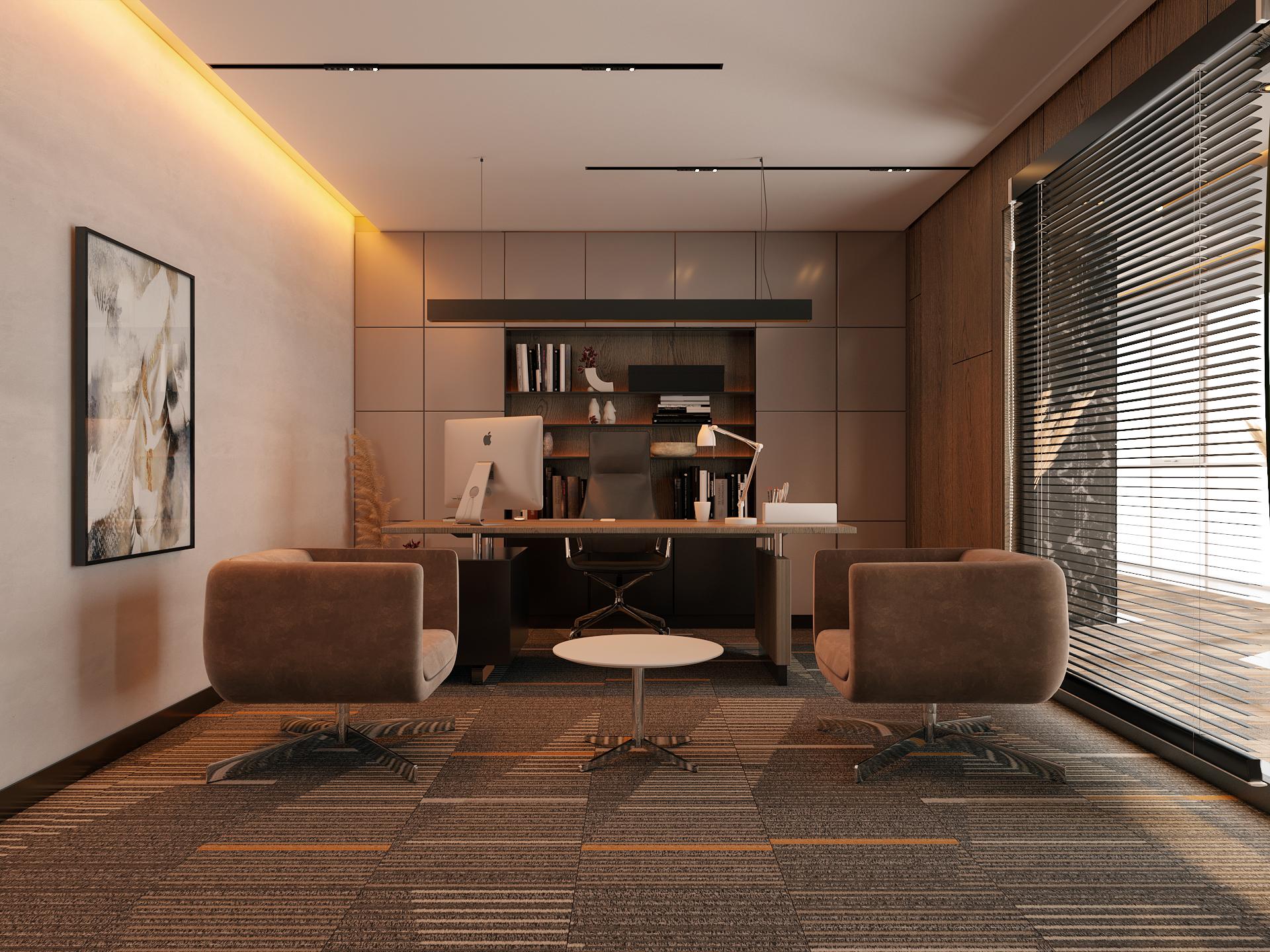 Yönetici Odaları: Prestijin ön planda olduğu bu alanlarda, koyu renk ahşap kaplamalar, tavan detayları ve özel ölçü makam takımları kusursuz bir işçilikle hayata geçirildi.