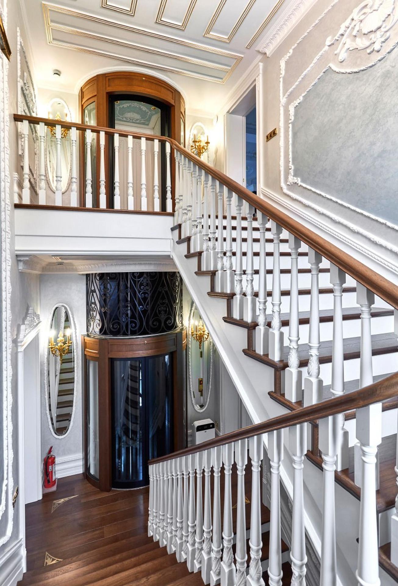 Merdiven ve Trabzan Uygulamaları: Yapının dikey akışını sağlayan, özel torna işçiliği ve el oyması detaylarla şekillendirilen masif ahşap merdiven basamakları ve dekoratif trabzan üniteleri.