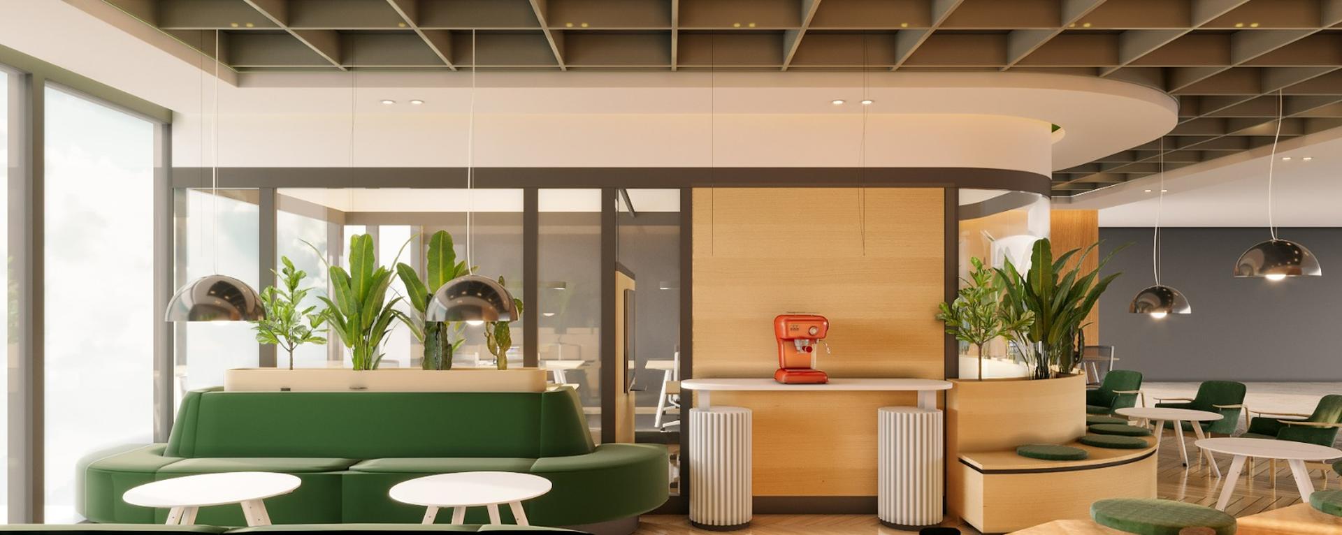 Çalışma ve Sosyal Alan Mobilyaları: Açık ofis düzenine uygun, metal ayaklı uzun çalışma bankları ve konfor odaklı, kadife döşemeli lounge koltuk gruplarının temini ve montajı.