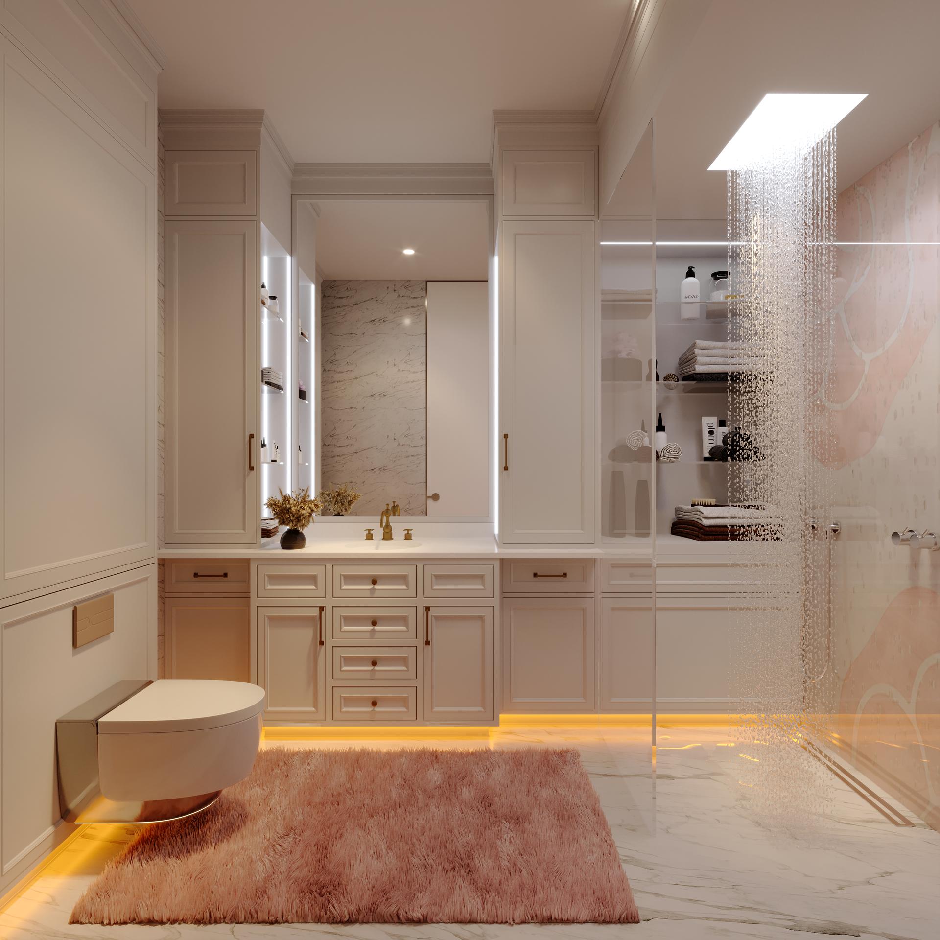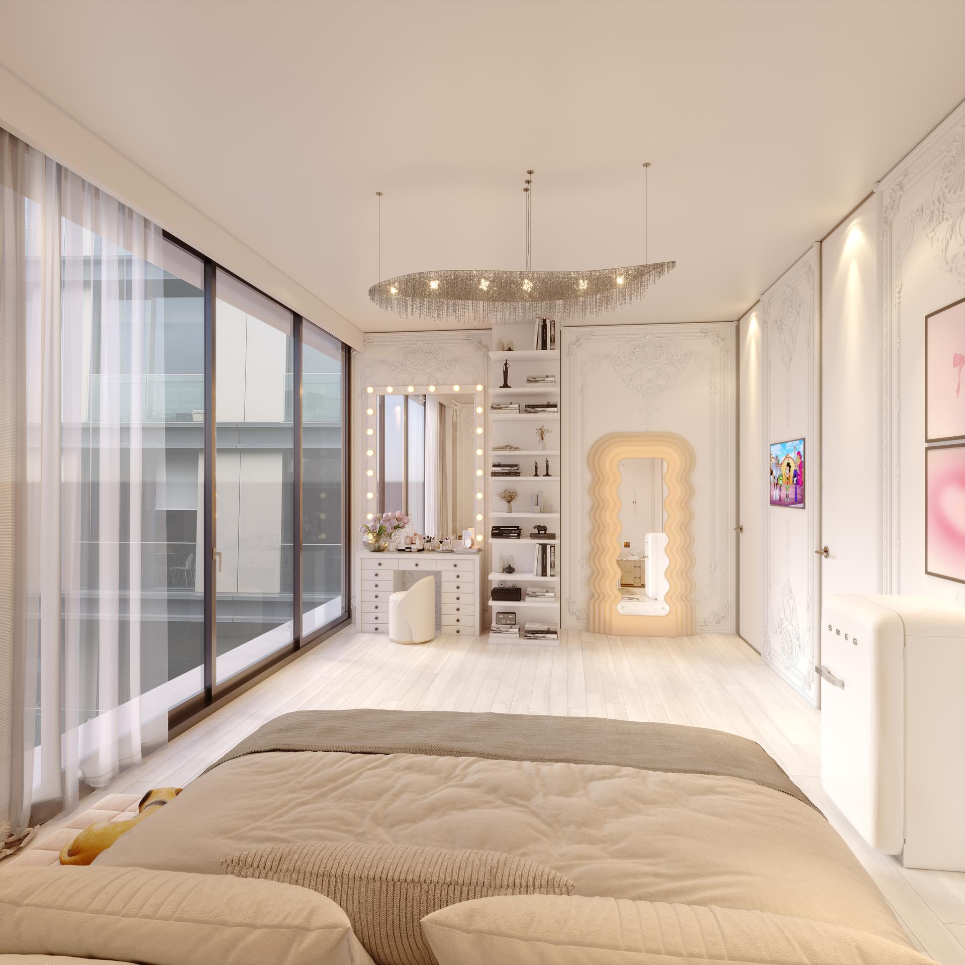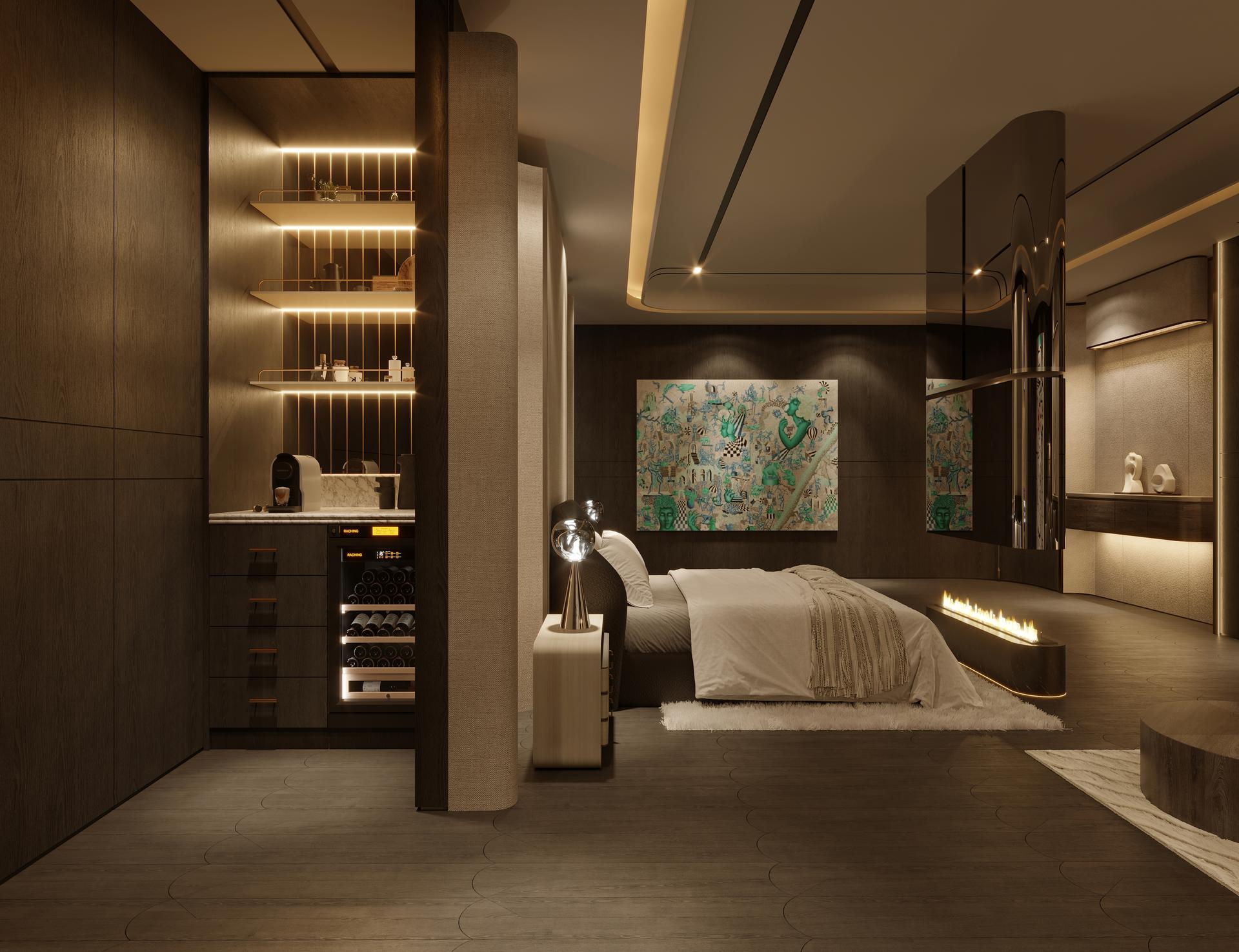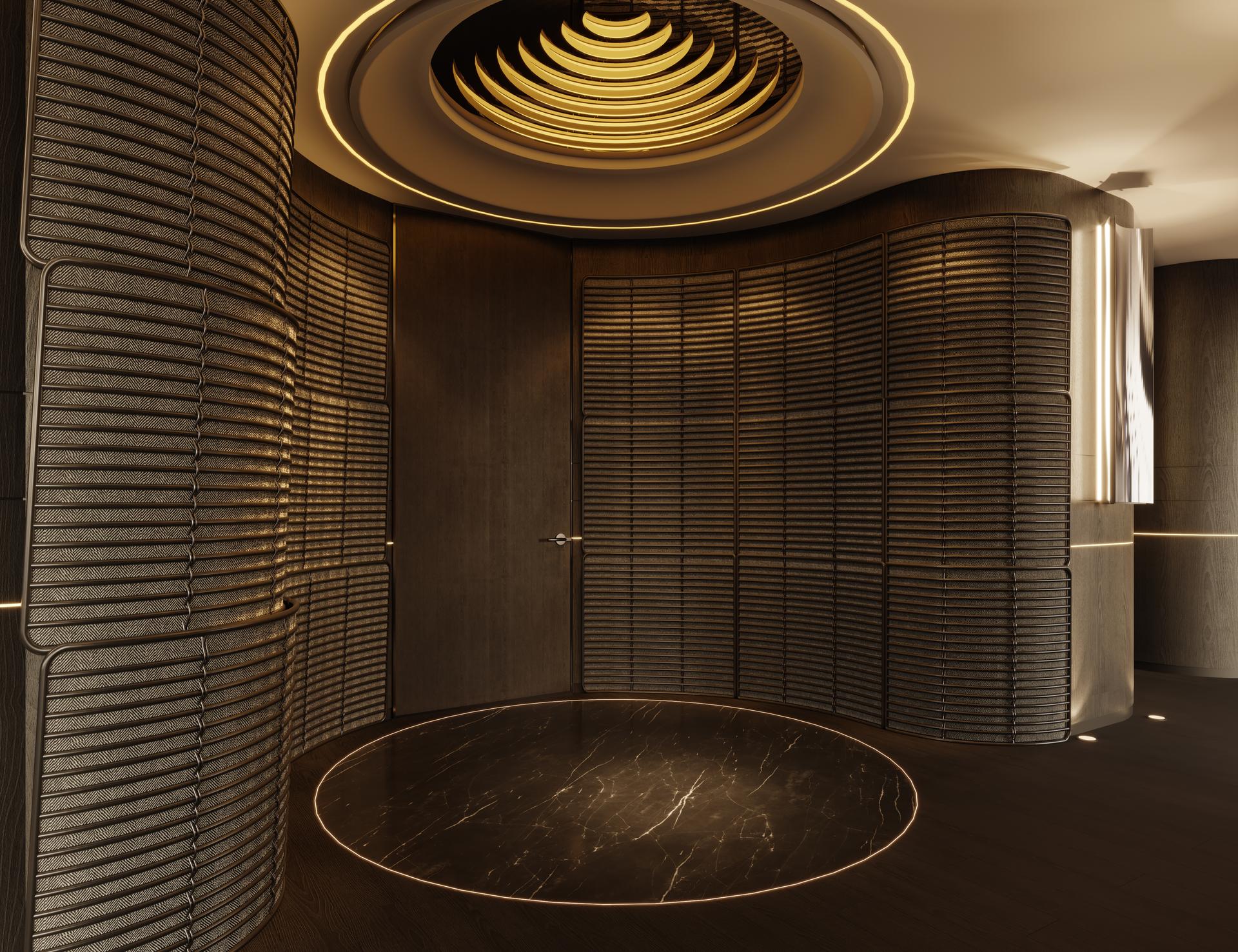 Giyinme Odaları: Kişisel bir butik şıklığında tasarlanan giyinme alanlarında; bronz profil detaylı reflekte cam kapaklar ve özel aydınlatma senaryoları ile kıyafetlerin sergilendiği, seçkin bir atmosfer yaratıldı.